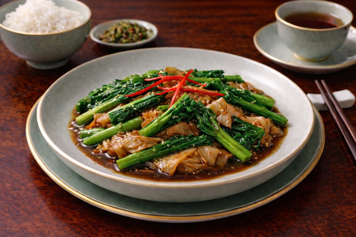 Weekly Buddhist Diet: Stir-Fried Rice Noodles with Chinese Kale Week 3 January, 2026 Summary: Stir-Fried Rice Noodles with Chinese Kale is a classic Cantonese-style dish adapted into a satisfying vegetarian version. Smooth rice noodles are paired with crisp, slightly bitter Chinese kale, creating a balanced texture and flavor profile. High-heat stir-frying gives the noodles a subtle smokiness while keeping the vegetables fresh and vibrant. The light seasoning enhances the natural taste of the ingredients without overpowering them, resulting in a clean yet savory dish. Chinese kale is rich in vitamins A and C, calcium, and dietary fiber, supporting digestion and immunity. Rice noodles provide gentle, easily digestible energy, making this…